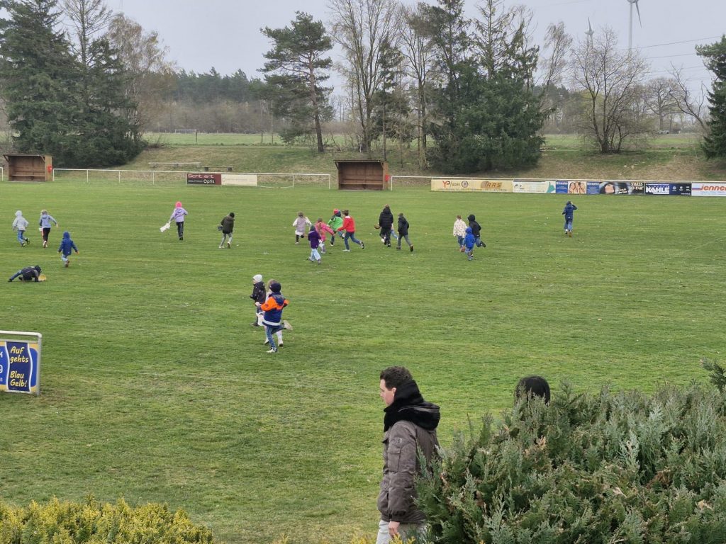 Am vergangenen Sonntag hieß es: „Ab auf das Feld!“ – allerdings nicht zum Anpfiff, sondern zur großen Eiersuche. Nachdem unser 2. Vorsitzender Uwe Weissmann alle Mitglieder begrüßt und die Fußballfelder offiziell freigegeben hatte, gab es für die Kinder kein Halten mehr.
